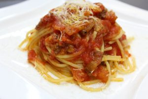 Η Αματριτσιάνα σερβίρεται παραδοσιακά στη Ρώμη με Bucatini, ενώ στο Amatrice την συνηθίζουν με απλό σπαγγέτι.