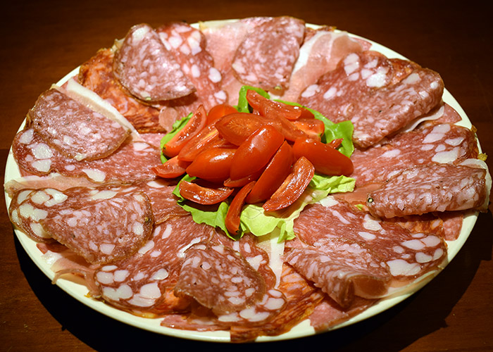 Τα είδη των αλλαντικών που αποτελούν (σε αναλογία πάντα) τα πιάτα  (όταν τα βρίσκουμε στην ποιότητα που θέλουμε) είναι: Mortadella bologna με φυστίκι Αιγίνης, Καπνιστό Χοιρινό, Καπνιστό Κοτόπουλο ή ΓαλοπούλαSpianata Romana Picante,  Vetrichina σαλάμι Salchicha σαλάμι, Παστουρμά, Speck ham Ιταλικό, Σαλάμι αέρος Θάσου, Σαλάμι μπύρας,  Finociona σαλάμι, Prosciutto  parmas. Προσθέτουμε κάποια ή αφαιρούμε ανάλογα την εποχή, ώστε να έχουμε πάντα άριστη ποιότητα στο πιάτο και να αναδικνύονται έτσι σε συνδυασμό οι ποικιλίες των κρασιών που τα συνοδεύουμε.