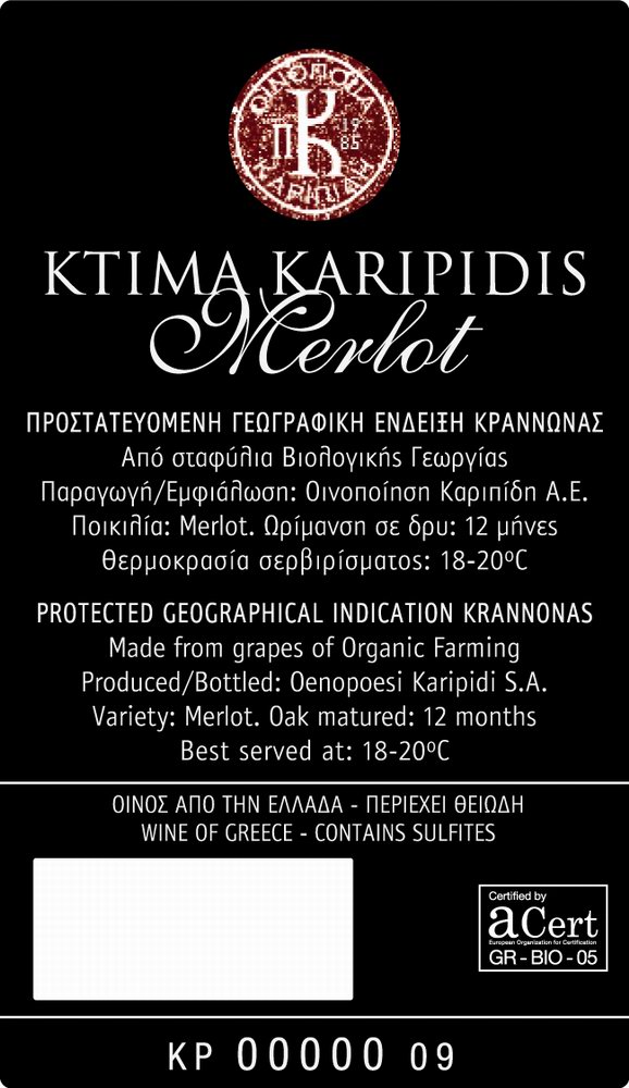| Οινοποιός | Κτήμα Καριπίδης Λάζαρος |