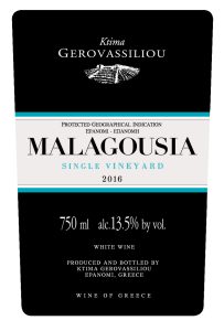 Χαρακτηριστικά-Παράγεται από την ελληνική ποικιλία Μαλαγουζιά, που διασώθηκε από εξαφάνιση χάρη στις προσπάθειες του Βαγγέλη Γεροβασιλείου.