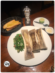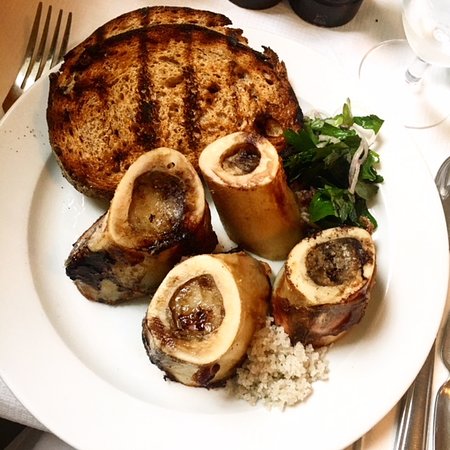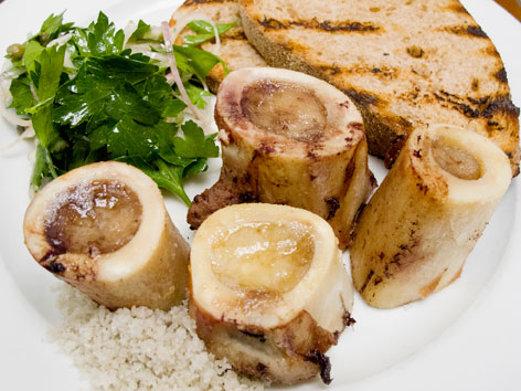 Μοσχαρίσιο μηριαίο κόκαλο . Ψημένο ψωμί αρωματισμένο διακριτικά με λάδι σκόρδου.