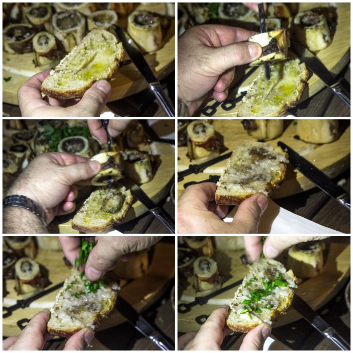 Αφαιρείτε το μεδούλι απ’ το κόκαλο και το αφήνετε πάνω στο φρυγανισμένο ψωμί.